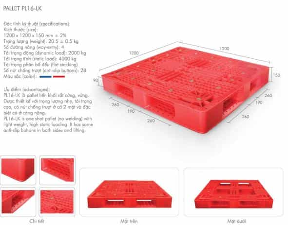 * Kích thước pallet (Dài x Rộng x Cao): 1200x1200x150mm